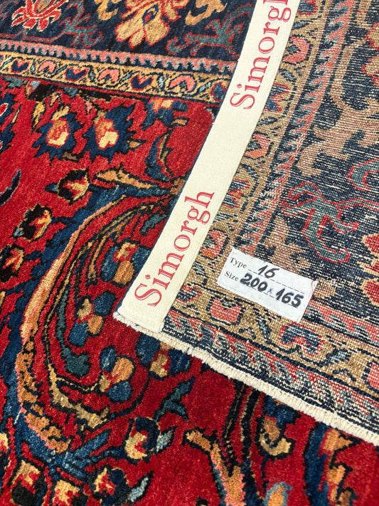 Tappeto Persiano Lilian (ca. 1930) - Lussuoso Floreale in Rosso e Blu 200 x 165 cm