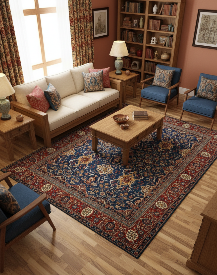 Warm and Lively Colours: The motifs are woven with an exceptionally rich and warm colour palette. Intense reds and terracotta stand out, along with accents of ivory, gold, and lighter blues that create a brilliant contrast and an extraordinary visual effect, warming up any room.